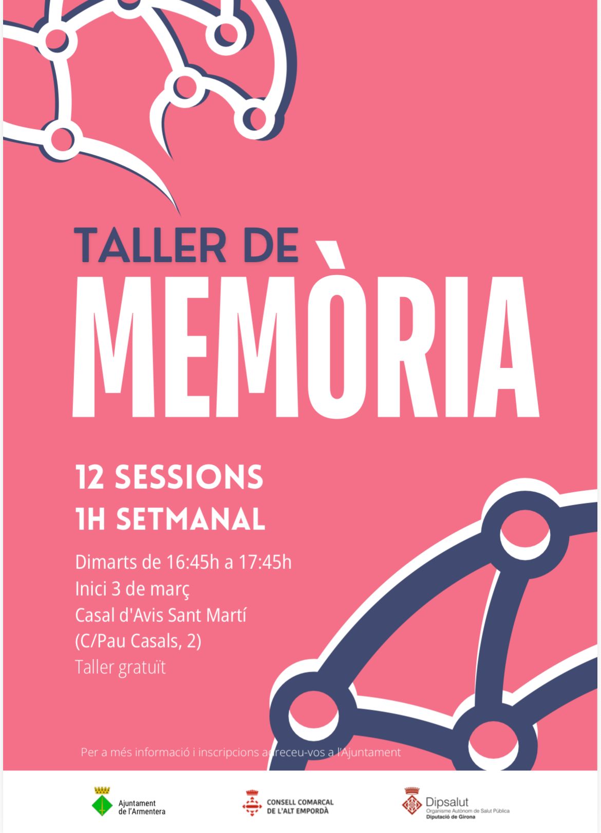 Ja t’has inscrit al taller de memòria? 📅 Inici: dimarts 3 de març🕔 Horari: de 16:45 a 17:45 h📍 12 sessions (1 h setmanal)✨ Taller gratuït 📝 Inscripcions al Casal de la Gent Gran