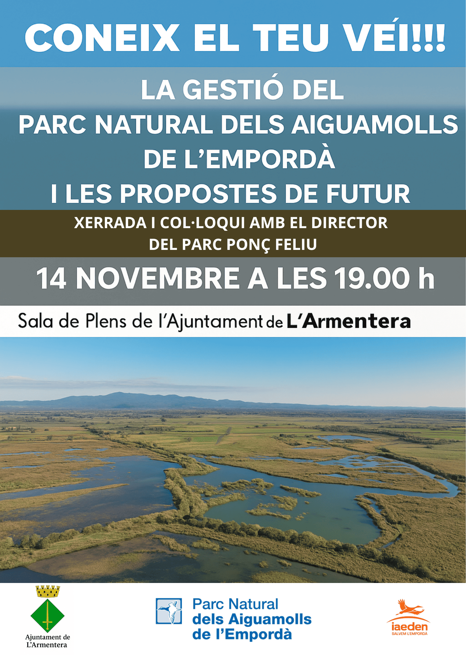 Vine a la xerrada i col·loqui amb el director del Parc Natural dels Aiguamolls de l’Empordà, Ponç Feliu, per parlar sobre la gestió del Parc i les propostes de futur. 🗓 Divendres 14 de novembre🕖 A les 19.00 h📍 Sala de Plens de l’Ajuntament de l’Armentera Una oportunitat per conèixer de prop com es gestiona […]