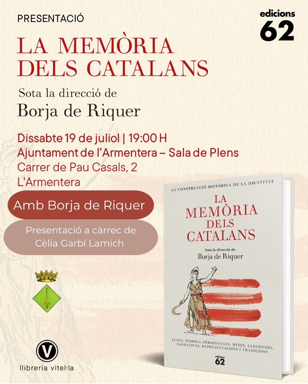 Vine a la presentació de: La memòria dels catalans Sota la direcció de Borja de Riquer Amb la presentació a càrrec de Cèlia Garbí Lamich