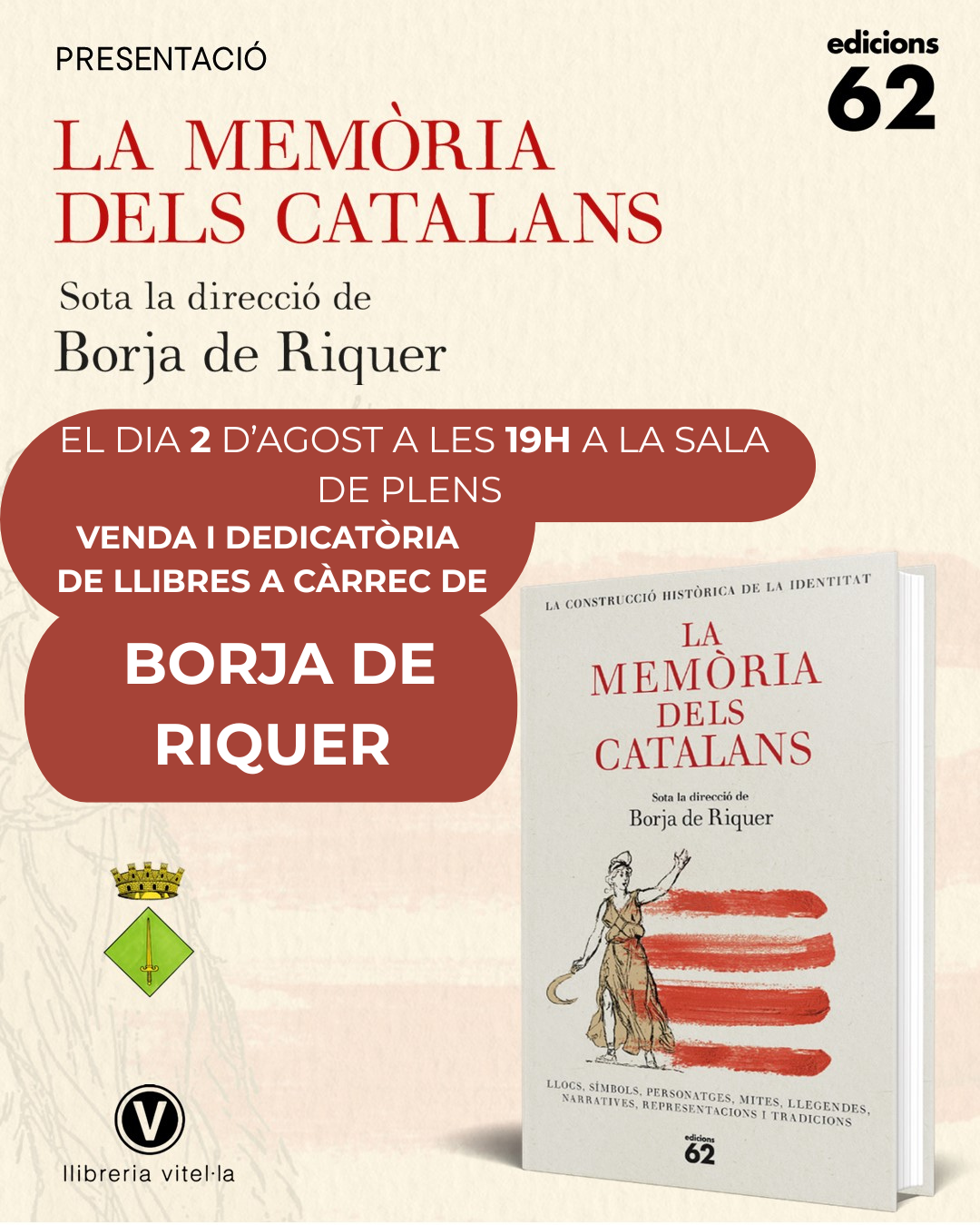 El passat dia 19 de juliol molts i moltes us vau quedar sense llibres a la presentació “La memòria dels catalans”. Per això hem acordat amb l’autor una nova trobada on hi haurà llibres i us els podrà dedicar. Dia 2 d’agost a les 19 hores a la Sala de Plens de l’Ajuntament